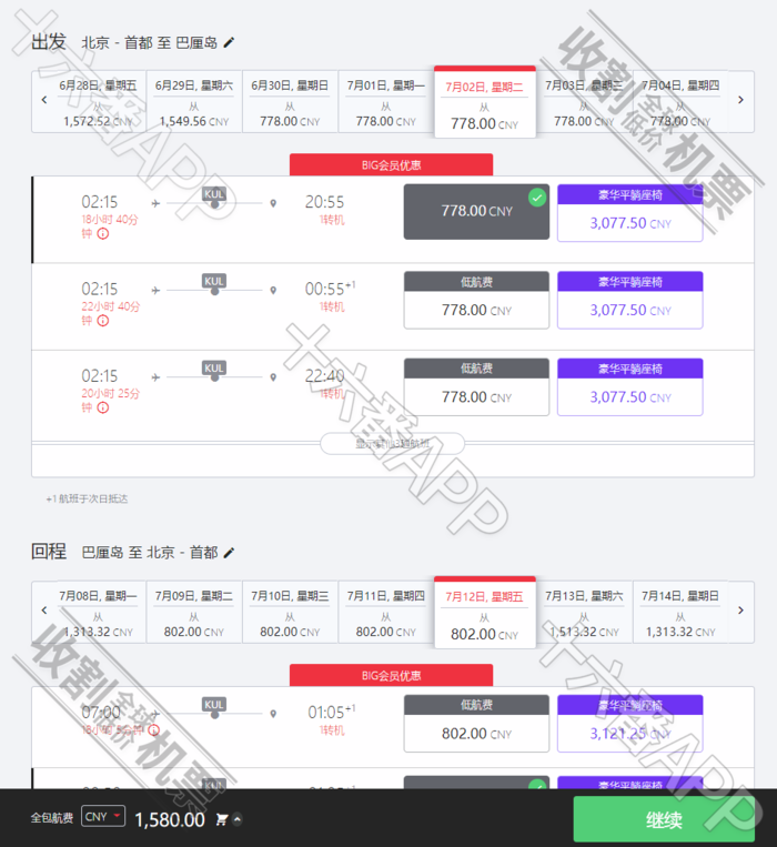 实测:北京=巴厘岛,7月暑假票,含税1K5往返