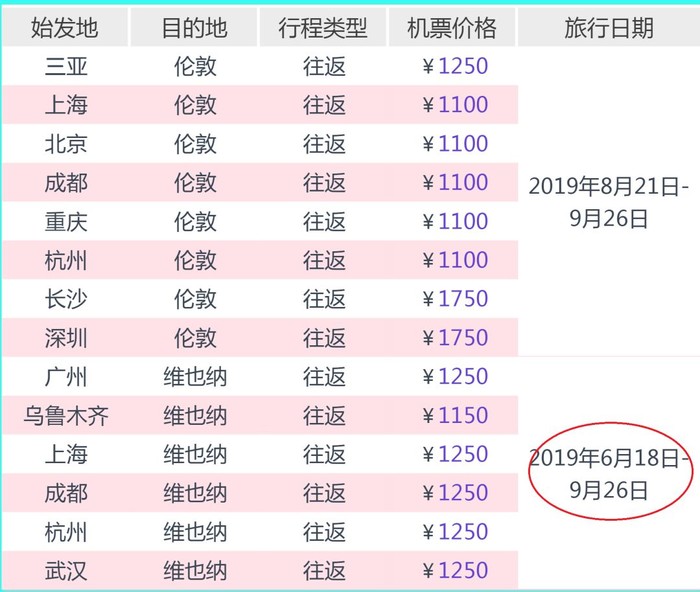 欧洲线,含税4K+往返。关注维也纳暑假票,官宣时间上没有屏蔽暑假,有戏!伦敦线,出发时间在8月暑假末,比较牵强,大家看看就好~