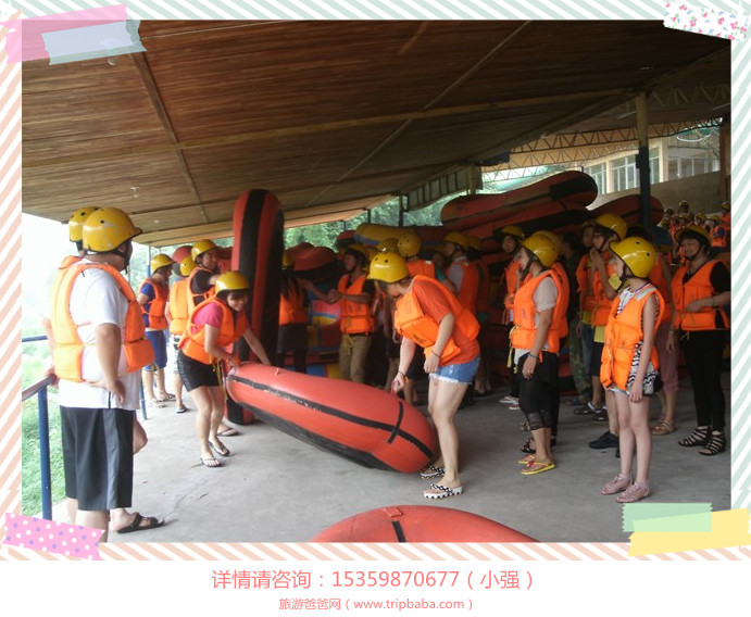 13:30 参加【激情漂流】(以景区当天安排的时间为准),领取救生衣,安 全头盔,穿好后,听安全示范讲解;下水漂流。“全程8公里,途径70个跌水区,60个穹道,从落差62米的溪流逶迤而 下-----顺水漂流,波急浪涌、惊心动魂,荣辱皆忘,既有高歌击浆的豪放,又有搏浪飞舟的激越。这是有惊无险的 航程,这是激情岁月的开始,体验一次,回味一生。”2.5个小时后激情漂流结束。