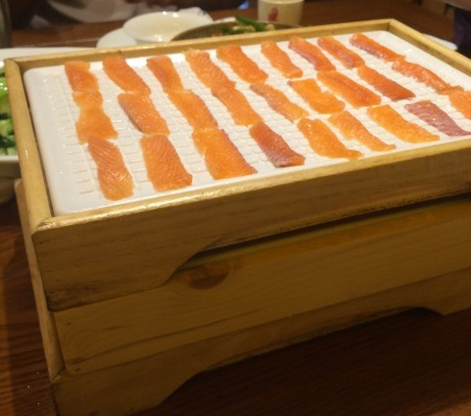 我们六人吃一条东江湖优质水源养得淡水三文鱼,肉美味鲜,喜欢,嘻嘻