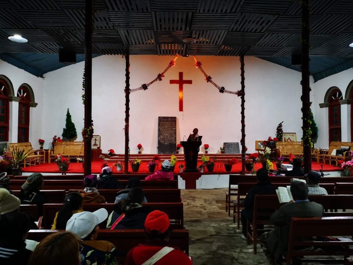 大理 古城接上人后我们继续出发,12点50分到达瓦窑镇的燊云牛肉馆午餐。4点到达 泸水 市,来之前只知道六库不知道 泸水 市,到后百度才知道六库镇是 泸水 市、 怒江 州的州政府所在地。过六库镇后没走几公里,领队就把我们带到路边一个野温泉,让我们下到底下去泡泡脚,水温还挺高,脚感水温有五、六十度。6点50到达金满银滩观景台,短暂休后于7点40分到达老姆登村入住150客栈,这应该是老姆登村最大最好的客栈,从我们入住的房间凉台上就能欣赏皇冠山的全貌,客栈距老姆登教堂几十米,我们到达时整个村子都停电了,给供电局打电话也没法解决,直到我们第二天早上离开也没有来电。