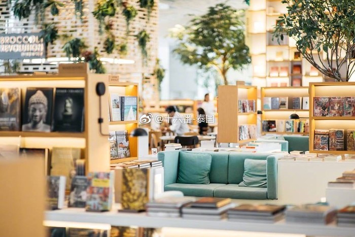 由打造东京代官山茑屋书店的建筑事务所 KDa(Klein Dytham Architects)所设计而成,位于曼谷贵妇百货的六楼,整体空间宽敞,天花板则手绘了600片树叶,搭配树木及其他植栽,呈现相当清新的室内风格。一旁的落地面窗迎则来大面采光,空间看起来舒适明亮,木地板与木牆等大量木作,营造出温暖的阅读空间。