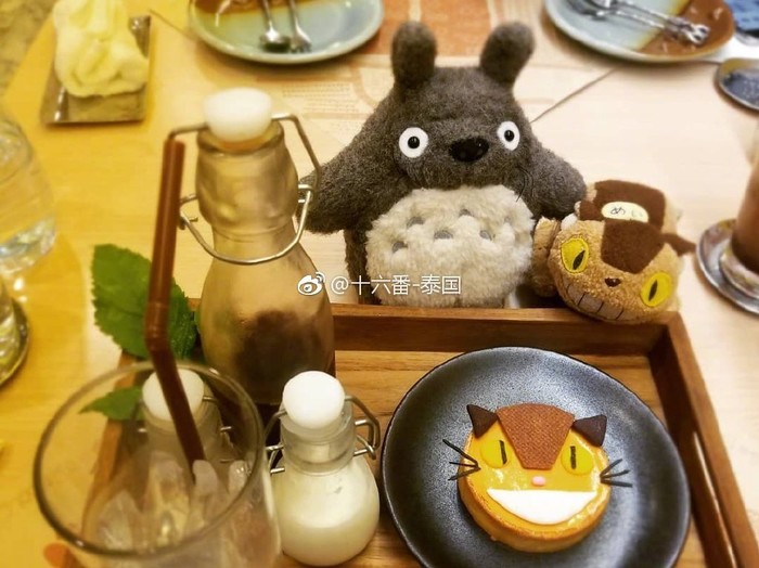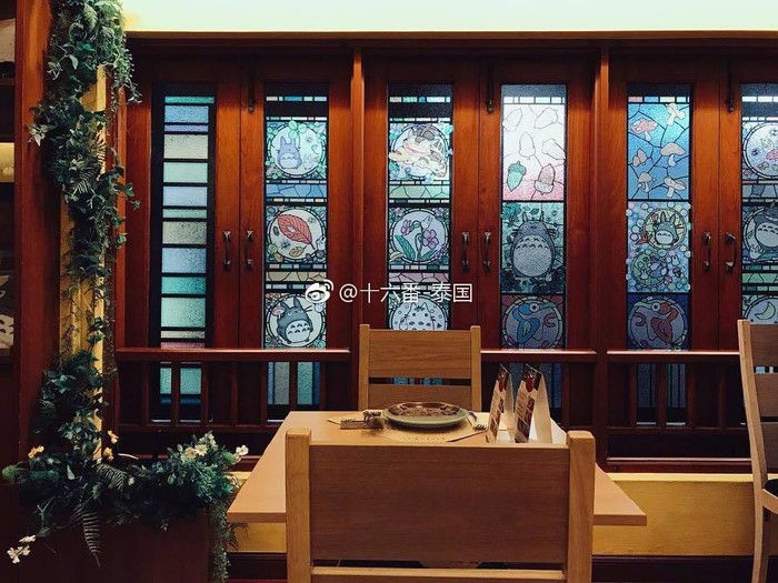 在曼谷市中心素坤逸路的一条小巷子中,从Siam Paragon搭BTS的话,大概25分钟。推门而进,是2.2米高的巨型大龙猫。餐厅内还有一个小小的龙猫空间,里面摆满了龙猫玩偶、书籍,以及有吉卜力签名的龙猫周边模型。餐厅以泰国东北菜(伊桑菜)为主打。