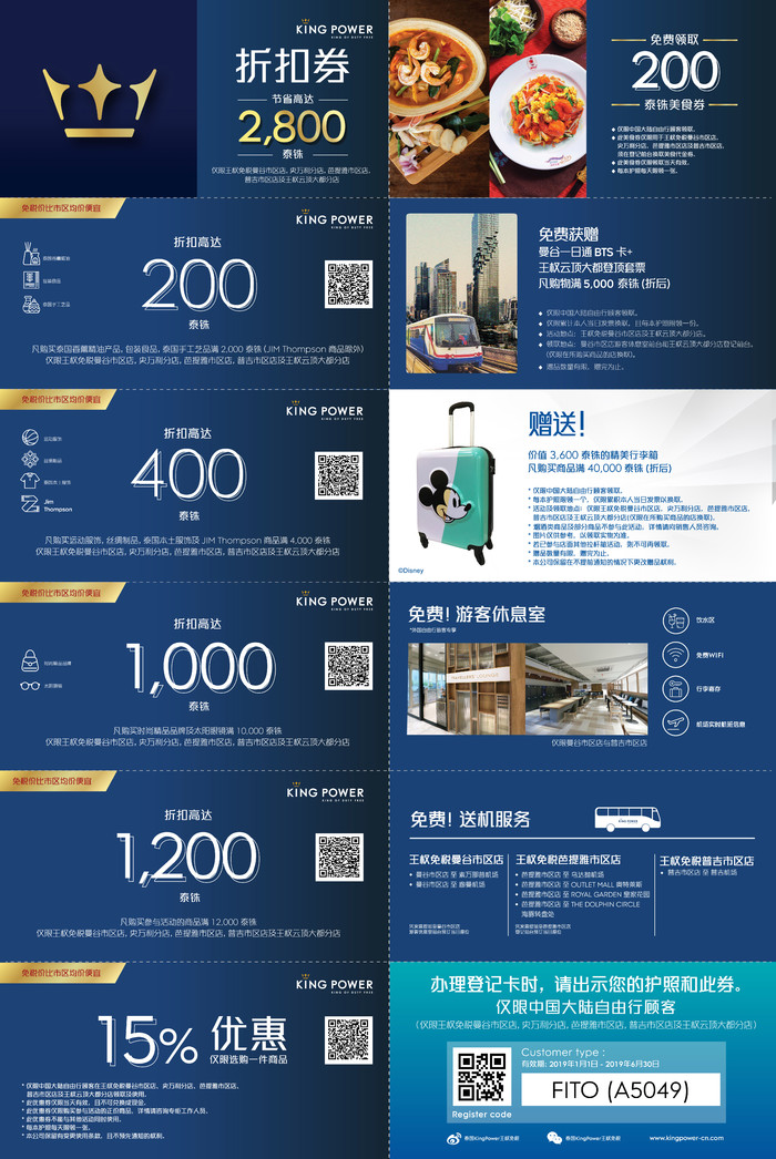 想在泰国王权免税店购物的小伙伴,不妨存下下面这张图,节省高达2800泰铢!还可免费领取200泰铢美食券!