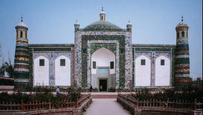 是阿帕霍加墓的别称,坐落在喀什市东北郊5公里处的浩罕村,是伊斯兰教白山派首领阿帕克霍加及其家族的墓地,占地面积30亩,始建于公元1640年前后,是典型的伊斯兰式古陵墓建筑。