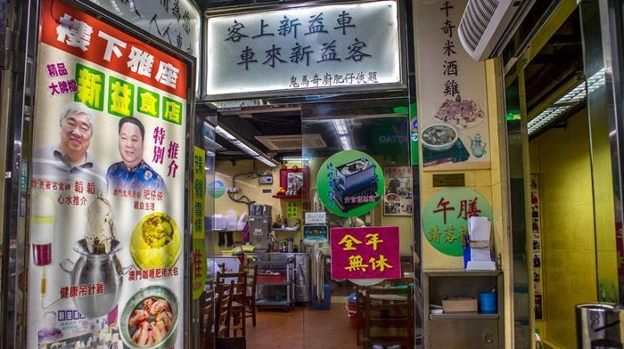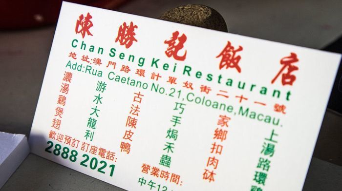 在路环知名景点圣方济各圣堂旁边的陈胜记,曾在数年前受到舌尖上的中国报导,招牌功夫菜陈皮鸭依循古法制作,七十多年来口味没变过。