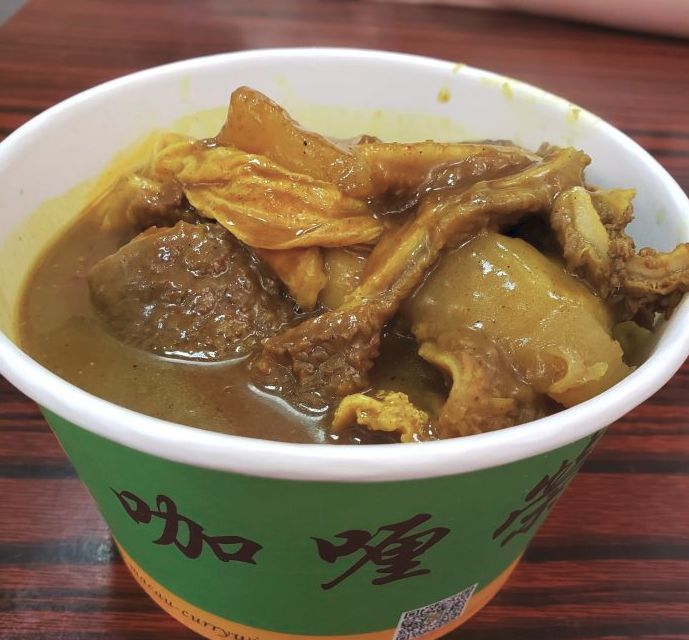当地人都吃的咖哩荣牛杂,绝对超级地道!一碗小小的,但里面有满满的内脏,不吃内脏可以选其他的。