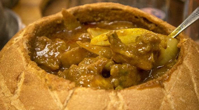 比椰子还大的『肥佬咖哩大包』装填澳门葡式咖哩,浓郁有味;三椒蒸排骨滑嫩辛辣的真带劲,连谢霆锋都赞不绝口~