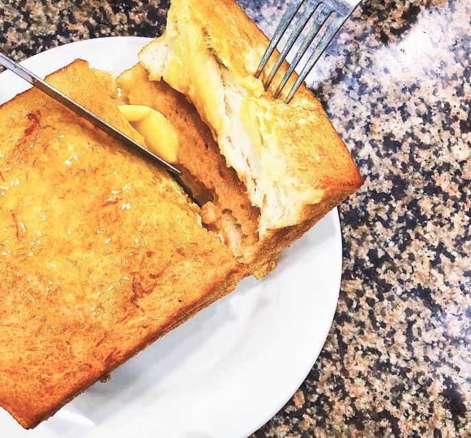 厚芝士的外表裹了薄薄一层轻盈的蛋液,面包外脆里软。里面流心的花生酱夹心香气十足,口感醇厚,不用浇枫糖浆上去甜度就很完美了~