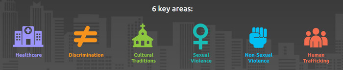 调查主要从医疗、歧视、文化传统、性暴力、非性暴力、人口贩卖,6个主要领域展开。