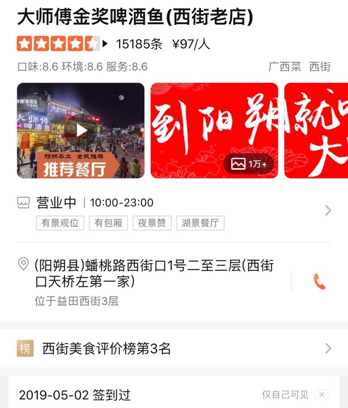 瞎逛完了后我们驶回十里画廊归还了小电驴,然后步行去了西街吃啤酒鱼。