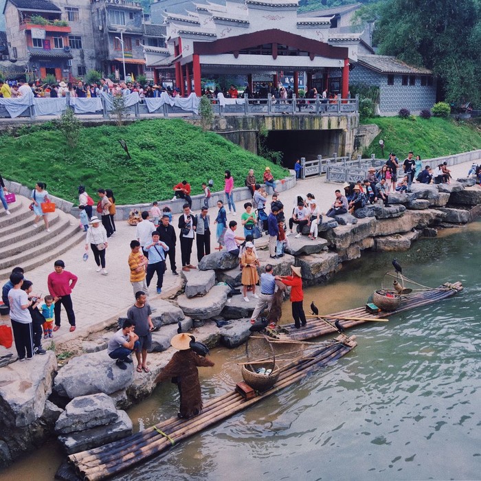 节假日人超多,本来想坐竹筏的,可惜前面排队的人也忒多了,我们的时间又不多,就只好遗憾放弃了。早知道前一天在十里画廊坐遇龙河竹筏过过瘾也好啊。