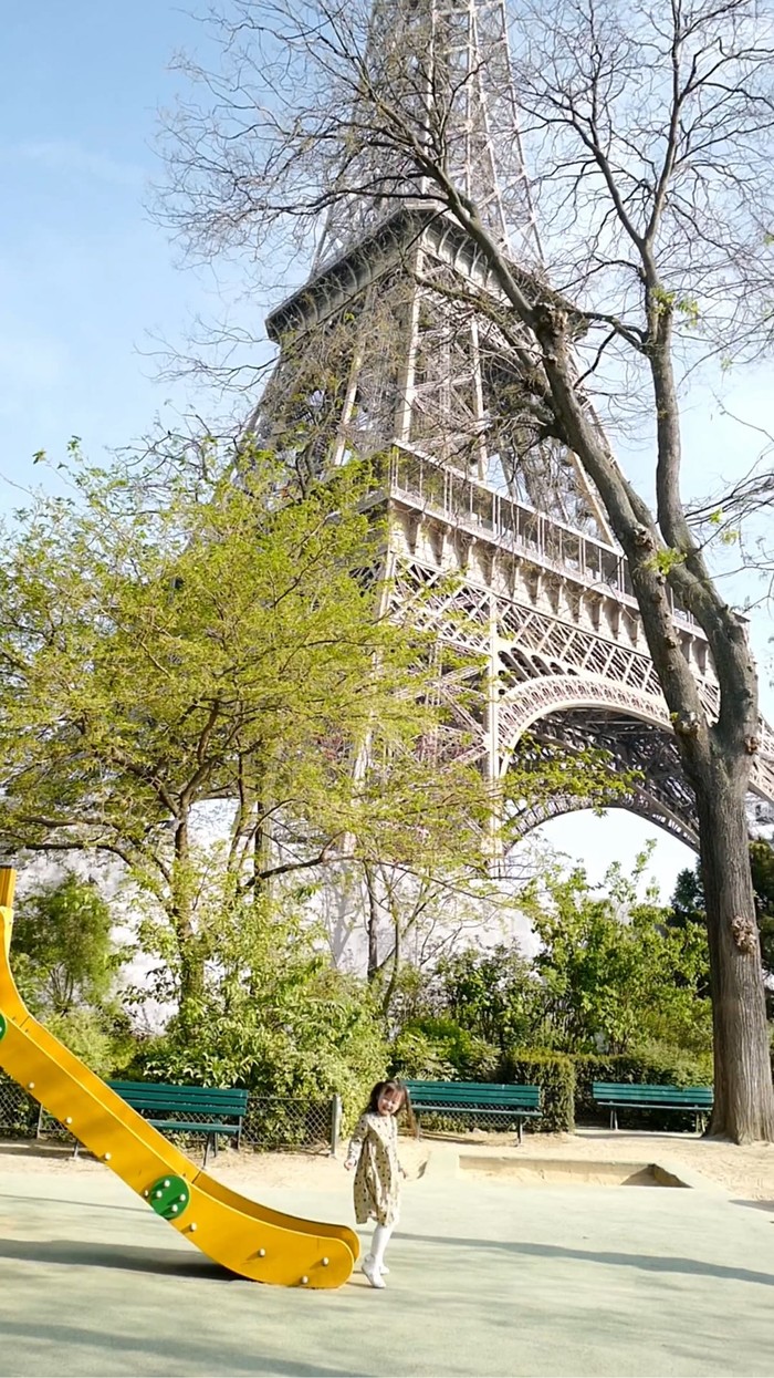停留不多时我们往战神广场慢悠悠的逛过去,看到铁塔下已经蛇形排列的很多人在排队登塔。我女儿吵的要上去,被我们安抚放弃哈哈,实在为娘不想排那么久。铁塔下有个儿童滑梯,坐在长椅上看着女儿在那么美的环境里玩耍,真是觉得岁月静好。时光你慢些可好?