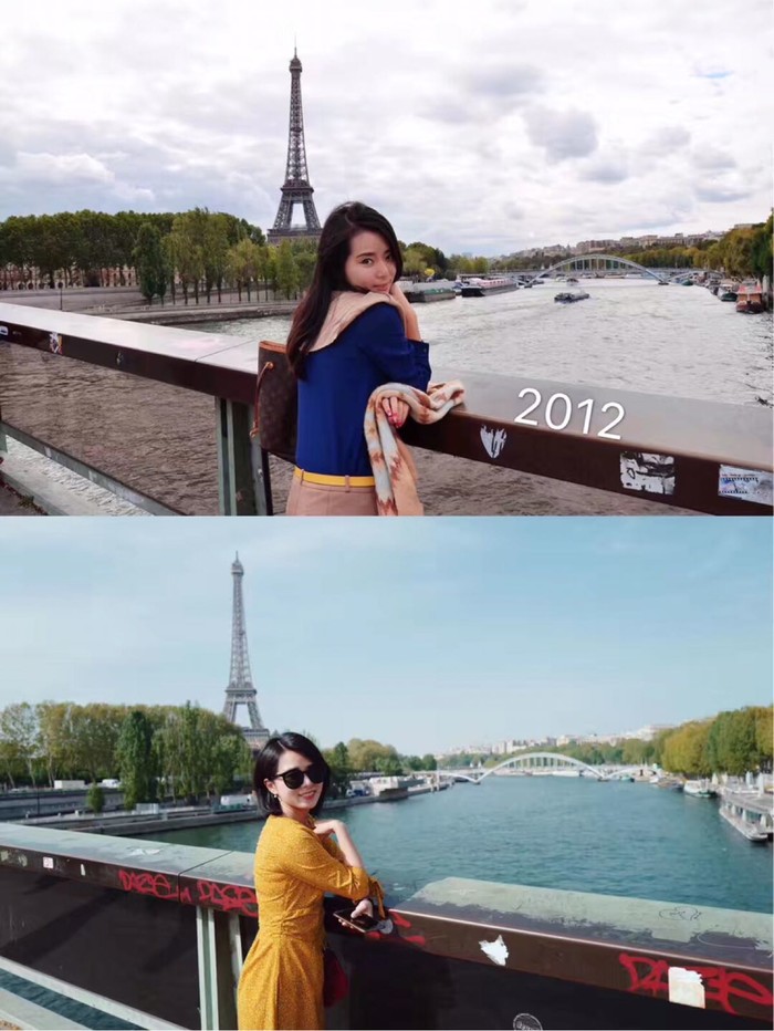 其实巴黎几个景点都离的不远,顺着导航往亚历山大三世桥走,路过6年前拍照的那个桥,同样角度来一张,咔嚓!少女变妇女。继续行走到香榭丽舍大街。午饭就准备街上解决了,搜了一家餐厅,吃了法餐,哈哈 说实话我吃不惯,鹅肝什么的还是很正点的,蜗牛我就没点了啊,怕吃不惯也是浪费了。没点什么吃了85欧,找回15欧零钱在盘子里,女儿不懂抓了钱放桌子上,服务生就认为是小费拿走了,好吧那就一顿100欧整~餐厅出来向着凯旋门过去,带女儿逛了逛也就午后了,因为是亲子游也要注意休息,酒店在十四区离的不远几站路,so回酒店午睡。