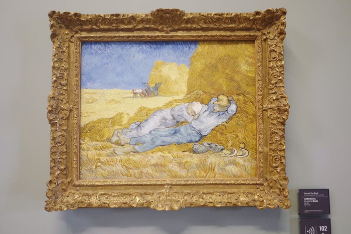 本来昨晚计划看的奥赛博物馆,考虑6点就闭馆,时间太仓促。安排在今早。票是网购好的,免去现场排队购票的时间。比开馆时间早15分钟到达门口,网购电子票是3号口排队,先安检,然后直接刷图片二维码进馆。进去有租语音解说器5欧元,也有中文馆内地图。