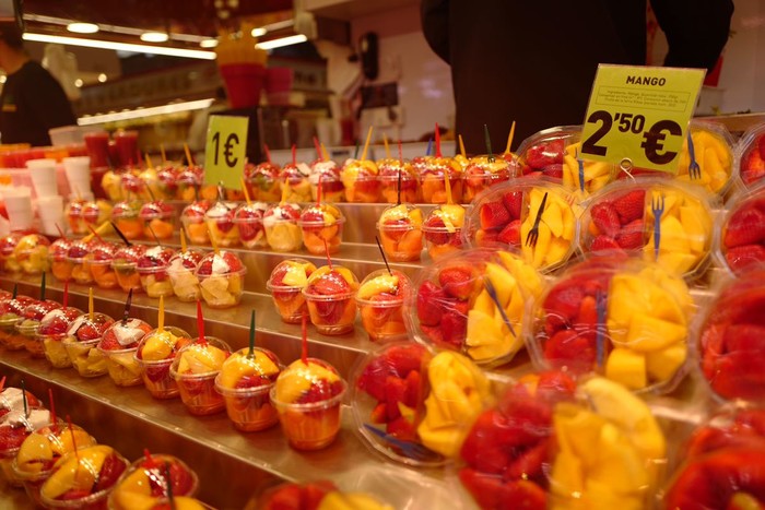 今天的安排是上午逛逛巴塞菜市场,下午参观高迪代表作中的两座公寓巴特罗和米拉之家。在巴塞罗那哥特区兰布拉林荫大街( La Rambla)巴塞罗最古老,最地道的波盖利亚市场(Mercat de la Boqueria)。这座大型海鲜农贸市场位于市中心,市场中水果,蔬菜,肉类,海鲜和熟食制品等应有尽有,被誉为 "欧洲的菜篮子" 。大概是早上出门吃的太饱,所以市场里只是饱了眼福,没有食欲想吃。之前在小红书看攻略有看到好看的波板糖,于是在兰布拉大街来回找,没有买到一样的。顺便在大街的旅游服务点购买了后天圣家堂大教堂的门票,也是为了不在现场排队买票。