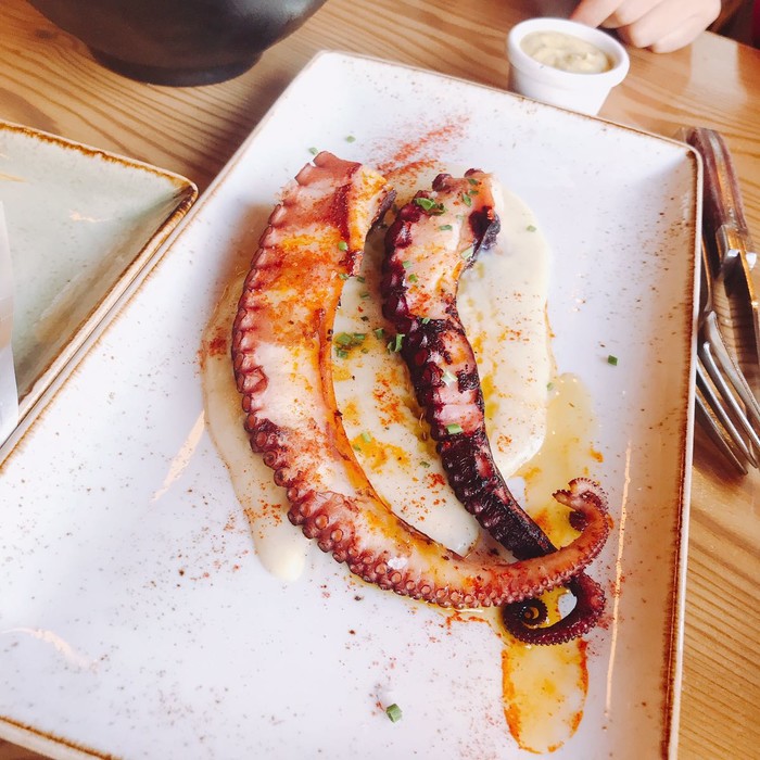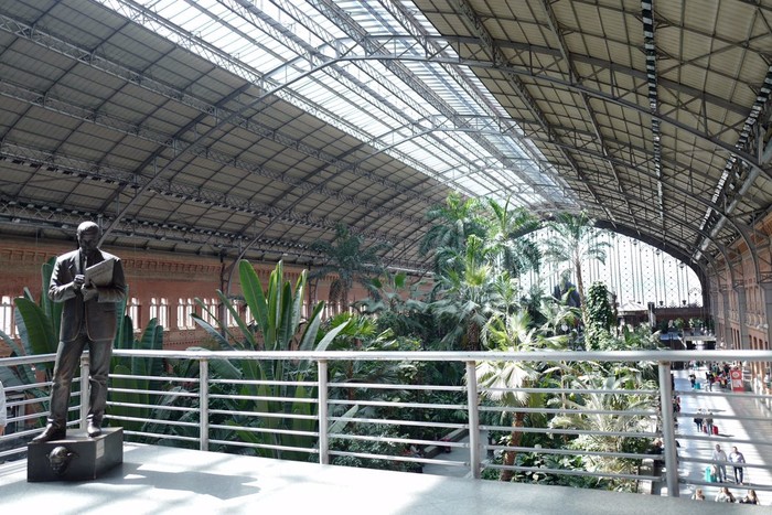 乘高铁从巴塞到马德里。马德里的火车站有点像网上看过新加坡一个机场,喜欢这种室内布置超大绿植。出火车站不远有集中坐taxi的地方,打车去酒店。办理入住后,出门觅食。我的中国胃告诉我,你要吃川菜!你要吃川菜!于是我们搜了一家太阳门附近的川菜馆。味道也是出奇的好。跟老板聊天,他们是重庆人。哈哈服务也好菜也好吃,价格也很公道。(饭点名字川渝人家)。吃完就在太阳门附近逛逛吃吃。在马德里的几天也是旅行的最后几天,比较悠闲。总的来说我更喜欢巴塞罗那。