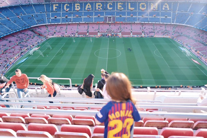 因为晚上去诺坎普球场看场巴萨对莱万特的比赛,参观完毕就回酒店用餐午休。起床后坐地铁4站到达诺坎普球场。我老公从初中就是曼联死忠粉,虽错过前几天曼联客场,不过还是决定来看场现场球赛感受一下。我呢,从来对足球没兴趣,女儿倒是很感兴趣(难道因为出生那年出月子正好世界杯,她爸每个夜里照顾她正好有世界杯球赛的陪伴熏陶的么?)球场附近吃了晚餐,就在入口出等待入场。门口人越来越多,大概提前了半个多小时开始入场检票找到座位。开始球场并没有坐满,大概是临近开场,球场就乌泱泱的坐满了球迷。上半场梅西没上场,比赛一直0:0,下半场梅西商场,15分钟左右进一球,球迷的尖叫我感觉球场都要掀翻了,(我淡定的坐着)。虽然之前连伪球迷都算不上,现在算是明白了为什么全世界有那么多人为之着迷。因为带着孩子,所以提前10分钟离场,怕最后散场人太多不好坐车回去。但后来看网上新闻,因为这场巴萨赢了也就提前夺冠,烟花和歌星表演也就因为提前离场错过了。不过安全第一哈。
