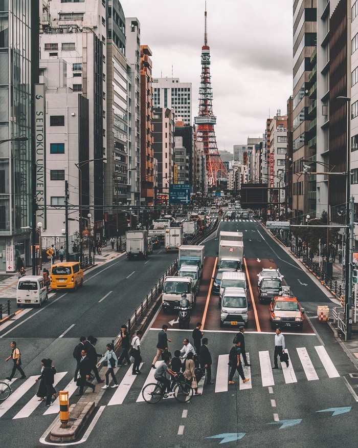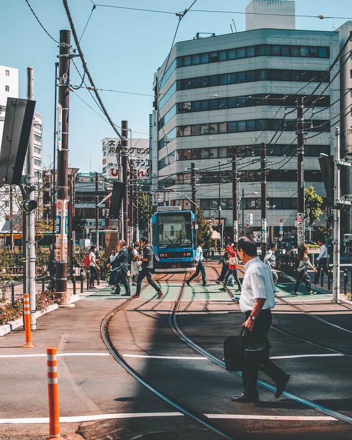 虽然是人口高密度的国家,但少有拥堵情况。行色匆匆的人群和列车融为一体,加上了时光的滤镜之后一切也变得趣味盎然。