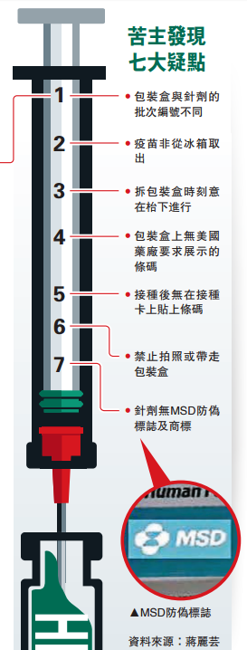 当王小姐要求查看针盒包装时,L医生却突然推说太多客人接种,已经把针盒都拆走,只多次重申疫苗从默沙东药厂来的,不可能有假货。