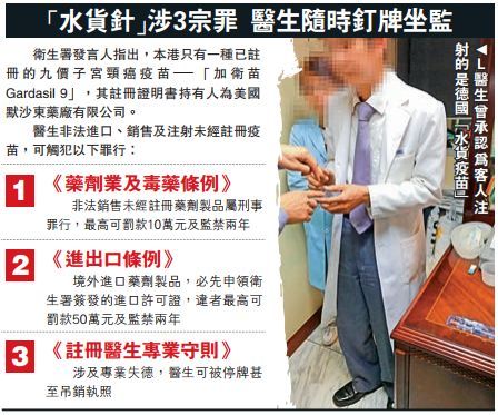 在香港,医生给病人接种未经注册的水货疫苗,不仅要被吊销执照,而且是刑事犯罪!