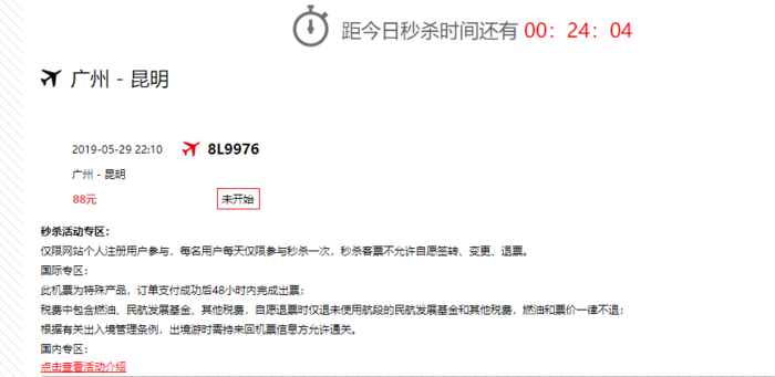 参与规则:活动设置: 8元88元机票专区(根据航班日期随机投放)15:00-16:30(暑运春运等客运高峰期间可能不投放,具体航班信息以实际投放为准),仅限网站个人注册用户参与,每次8元88元机票活动每个用户仅限参与一次。