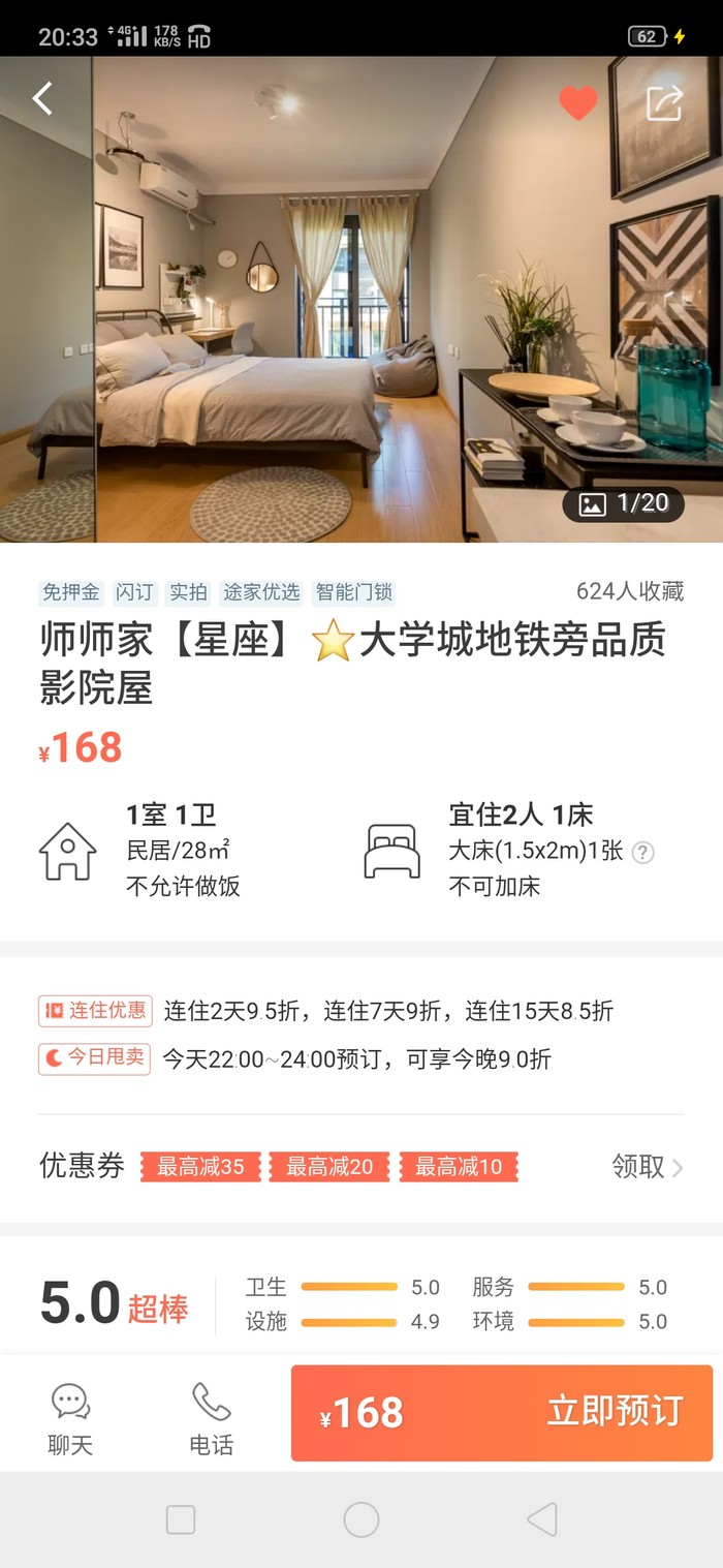 还不错,主要是想体验一下投影仪哈哈,房间不大,很干净的,老板放的洗漱用品都不是那种廉价的,这点不错!但是,如果打算去解放碑,磁器口这类地方的,就不见意住了,太远了
