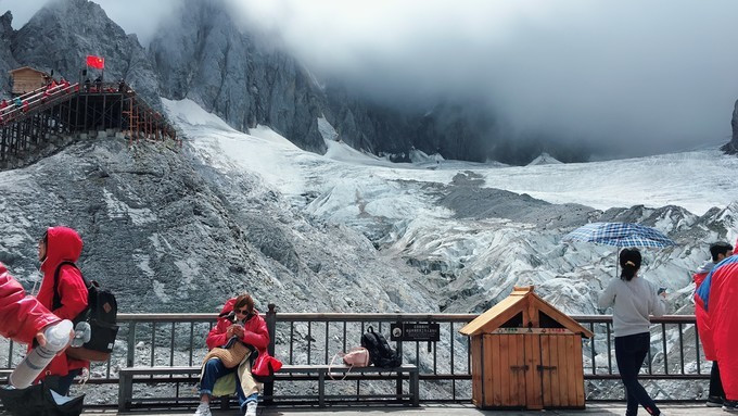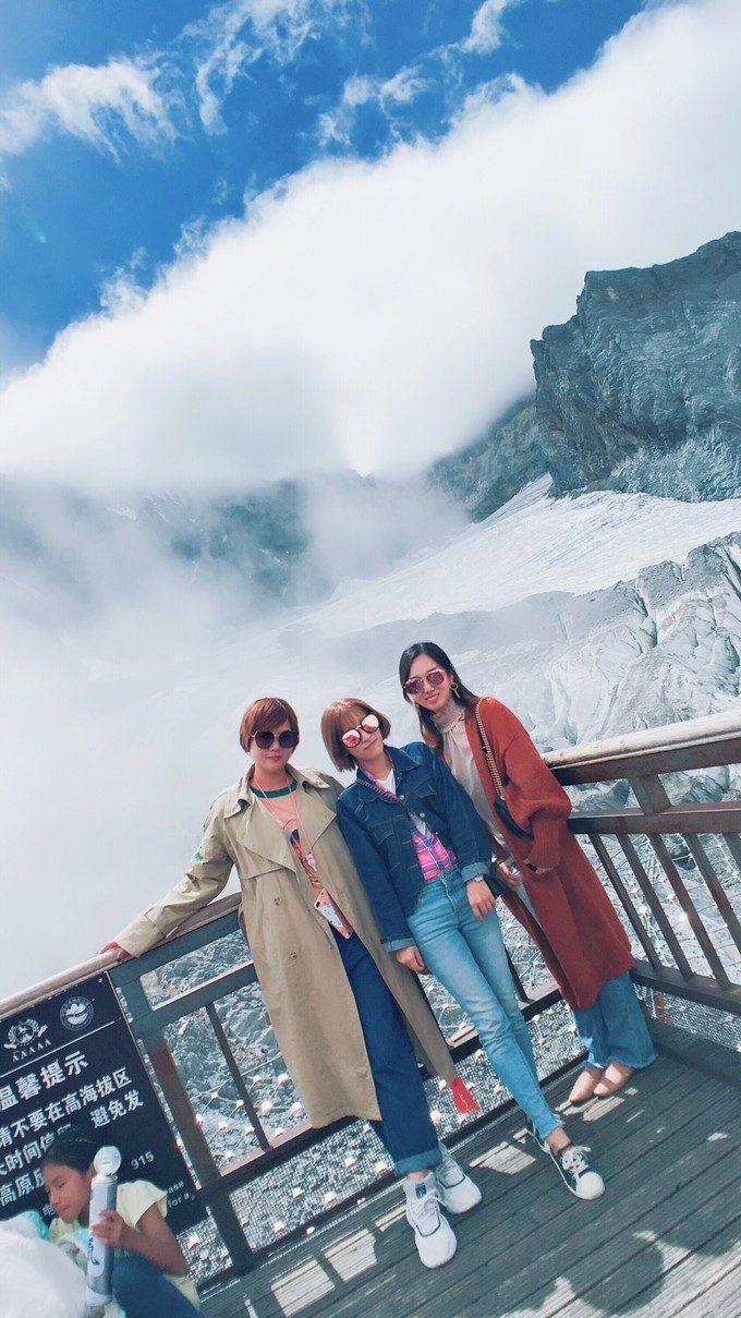 来之前 就已经提前就和橙橙预订好了去的纯玩自由行,我们四个和另外两个人组的小团商务车,听说10月份雪山大索道就开始永久关闭,意思就是以后大家都不可能上到 玉龙雪山 的最高处了,这是为了保护雪山环境。所以想来雪山的小伙伴抓紧机会。行程里的费用包括了连往返车费,进山费,大索道,景区车,氧气,外套,午饭全部计算进去了,比较省心,上午逛了蓝月谷,午饭后乘大索道,索道下来后开始往上爬,游客能到的最高点是海拔4680米,爬的时候要小口缓慢呼吸(别问我是怎么知道的……我一开始像在平原地区一样深呼吸往上爬没过多久就觉得心跳加速呼吸开始有点困难,平时还算有运动身体还行就是因为这个千年道行一朝丧在最高的两段台阶上还是用到了氧气瓶),我们大概花了30分钟从索道上站到4680,这个季节雪比较少,但雪山和一部分冰川还是震撼。大家比较关心的两点:氧气瓶和羽绒服个人觉得氧气瓶还是备一个以防万一,一般姑娘小伙衣服稍厚一点的抓绒衫应该也行了,怕冷的再租羽绒服吧。