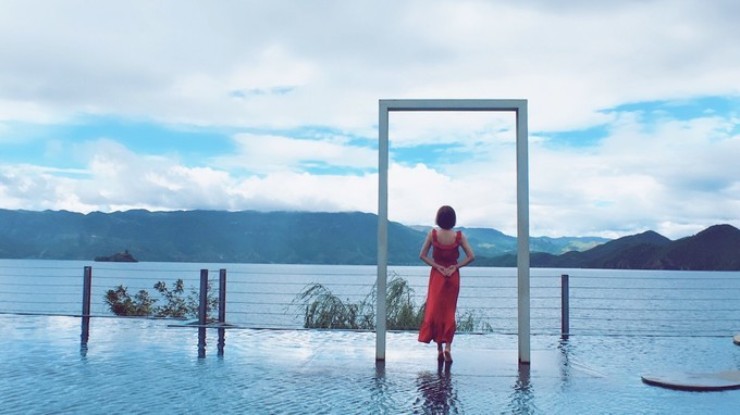 泸沽湖 从今天开始后面的行程出于安全和方便我们四个依旧选择的是橙橙家纯玩自由行,早上王姐到酒店接我们,不堵车情况下从 丽江 到 泸沽湖 三四个小时,都是翻山公路,地势险峻,一路上时而天晴时而下雨,让我们对 泸沽湖 的天气感到惴惴不安,因为如果天气不好, 泸沽湖 是没有美感的,也看不到美景,所以想看到犹如仙境的 泸沽湖 全凭人品和运气,好在我们运气不算太差,到达景区是天晴有太阳的,虽然云层很厚,但是肯定比下雨要强太多
