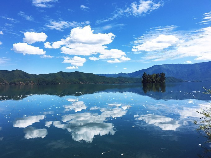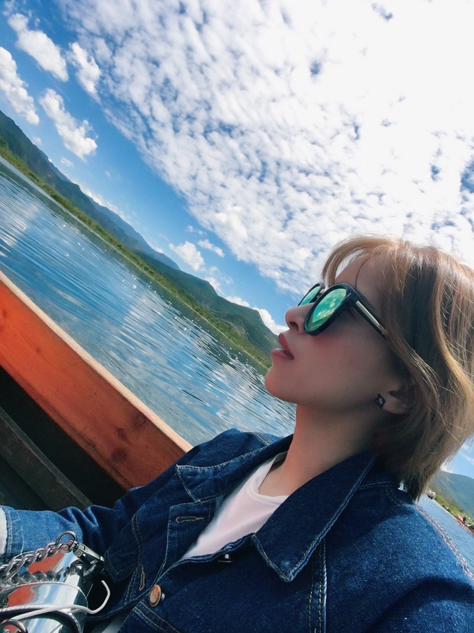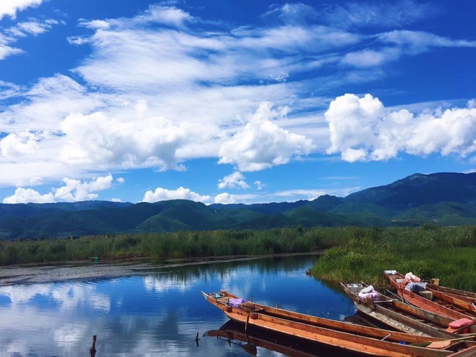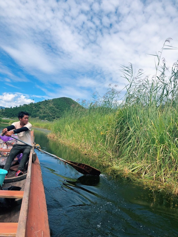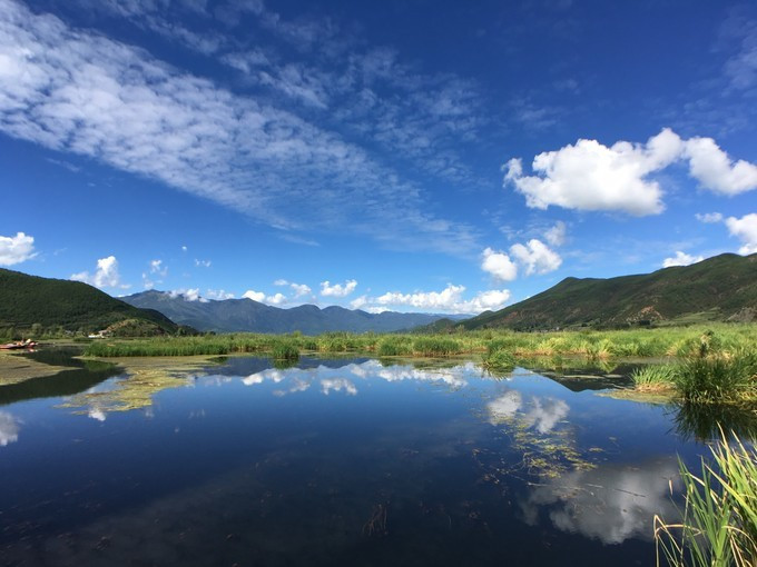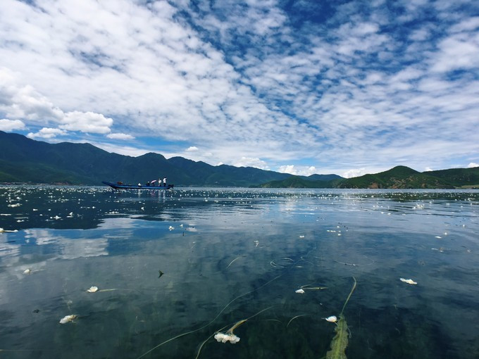 接着我们去草海划船,正值大中午,把我们晒的天昏地暗,整个头皮都是疼的,紫外线太强了。不过景色真的美极了,水面上开着水性扬花,蓝天白云倒映在湖面上,天气真的非常好,所以拍出来的照片才好看。