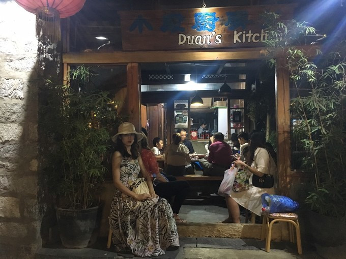 晚上在 大理 古城传闻王菲去过的小段厨房吃晚餐,菜品口味相比前一天好很多。4月底 大理 天气开始转暖,白天可以穿吊带,晚上穿短袖也不会冷。