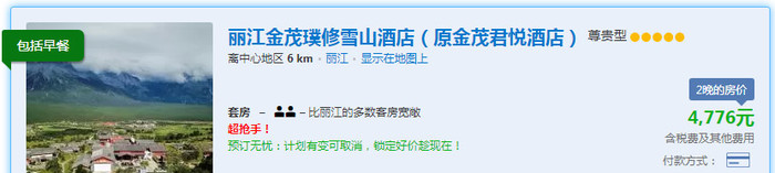 除了三亚,丽江也是热门旅行地~此次金茂酒店旗舰店也推出了丽江的酒店优惠。