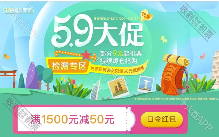购买平台:春秋航空app、官网https://pages.ch.com/act/59jianloupc?intcmp=59jianloupcwwy_yx_190512_homeflash1