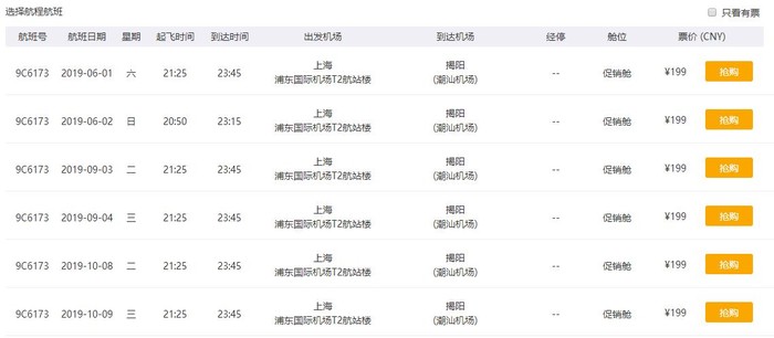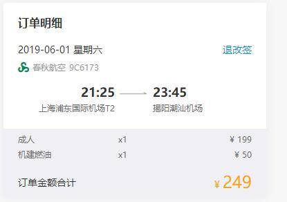 上海-揭阳,单程含税249元