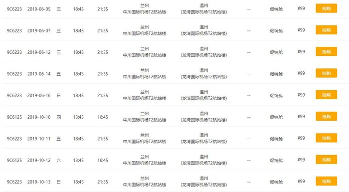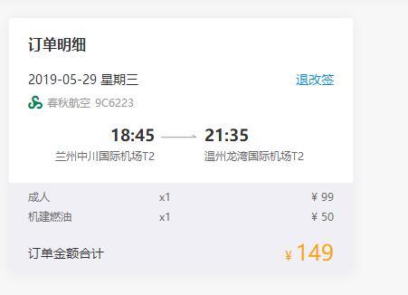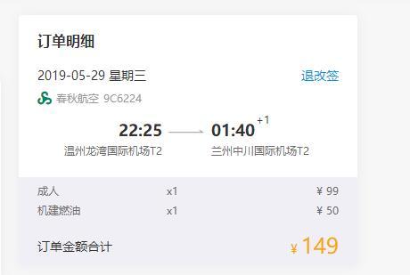 温州-兰州,单程含税149元,往返含税298元