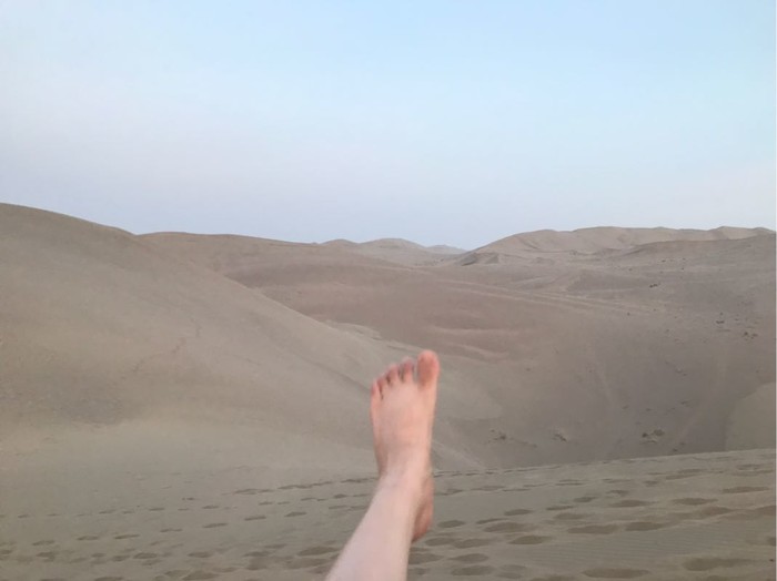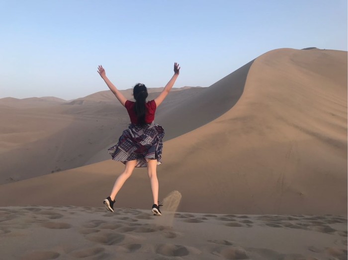 如果鞋里进沙就痛快点脱下臭袜感受柔软的小沙漠和你的亲密接触,未曾光脚体会细沙从脚尖流淌而过何以谈来过沙漠。