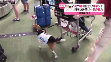 比如入境日本,日本海关培养的探知犬就派上了用场。如果你的行李中携带了违禁品,嗅觉极其灵敏的探知犬,一旦闻到,便会做出指示动作,那你的行李就要被海关“盘”了!