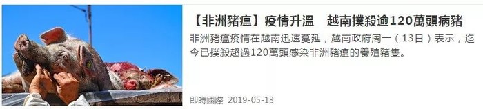 越南本月13日表示,迄今已扑杀超过120万头感染非洲猪瘟的养殖猪。