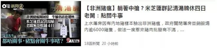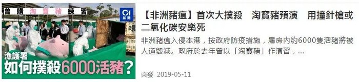 上周,香港上水屠房的猪被验出带非洲猪瘟病毒,食物环境卫生署一连两日扑杀屠房内共6,515只猪。