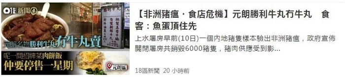 猪肉供应受到影响,而屠房停止运作,也令活牛同时「遭殃」。不少食肆都相继宣布,部分食品将需停售。驰名元朗的胜利牛丸,居然没有牛丸售卖,要以鱼蛋代替。