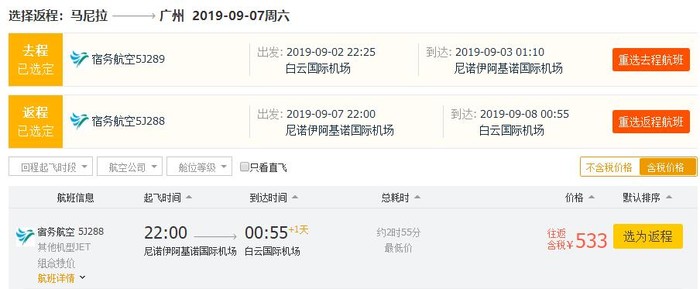 广州=马尼拉,往返含税500多,