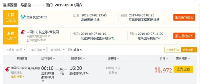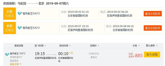 北京=马尼拉,往返含税现在800多了~