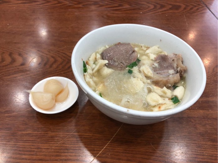 今天早上一下火车准备去回民街打个卡 路上遇到个本地的大叔 告诉我回民街的东西难吃还有贵 我还不相信 到了鼓楼站下了公交车 开始逛回民街 早上的回民街 没有几个人 清洁工人正在清扫着油腻的街道 打开手机App看到 来到了西安必吃的回民街网红羊肉泡馍 老米家大雨泡馍 早上的店里也没有几个人 点了一碗38的羊肉泡馍 老板拿一个碗里面放了2个泡馍 说自己撕好了 放厨房柜台上就可以了 期待了半天 终于上来了 一看真的大吃一惊翻了半天 里面簿簿的2片羊肉 吃了一口 还有羊骚味道 真的不咋地哦