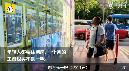 @头条新闻:香港大叔伟林是一名资深“劏房户”,住处仅4㎡,除了上下铺几乎没有落脚空间,透气孔勉强成窗户,“隔壁有窗的租金就要3500了”。年轻人Alan住11㎡“劏房”,感叹40万一平米的房价,靠工资买房根本无望,“工资将近一半都给房租,如果可以离开就好了。”