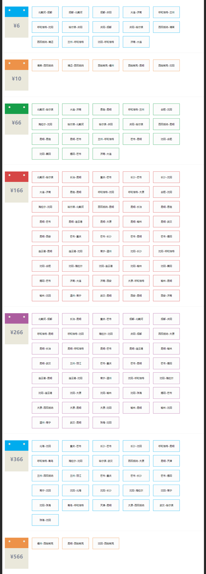 秒杀航线如下,重点:本次秒杀航线非常多!!!