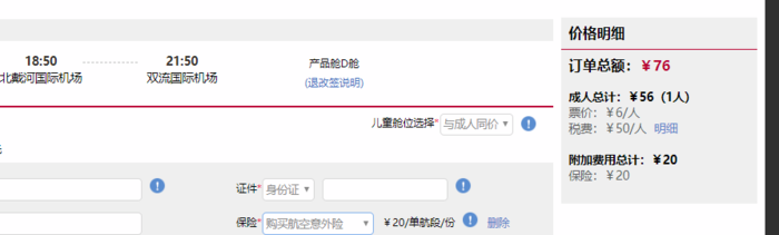 在图上价格的基础上,均有20元的保险费,国内航线有50元的税,国际航线会有几百元不等的税费,最终价格请以秒杀页面为准。预计国内航线总价,最低只需76元!