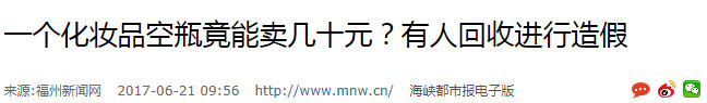 对此,从事化妆品代购的陈先生告诉记者,化妆品一般分两种,一种是分装,一种是原装,原装就是化妆品厂商直接生产,而分装就是自行灌装。他说,业内专门有人四处收集高档化妆品的空瓶,再往里面灌装一些劣质、低价的化妆品,通过网络以稍低于原装产品的价格出售。其中,网上一些低价出售的化妆品或代购的化妆品不少是空瓶回收再灌装的假冒伪劣产品。