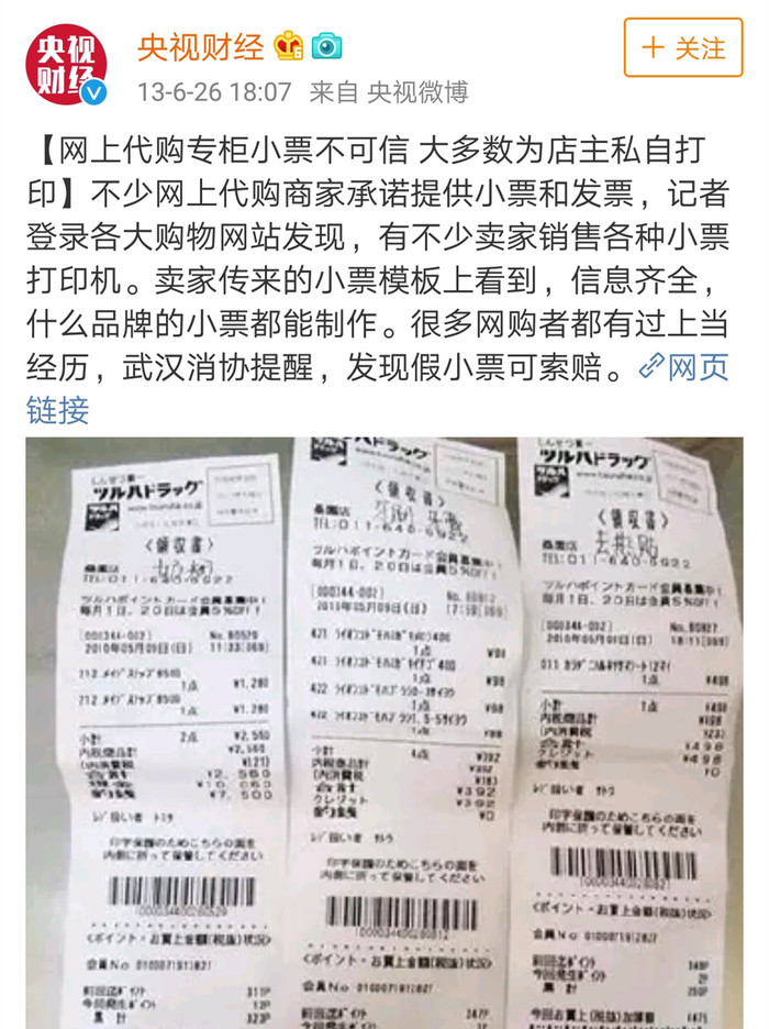 消费者判断代购商品真伪的重要依据之一,就是购物小票、刷卡凭证等单据,但一些不法商家要想获得这样的假冒单据其实也并不困难。而且随着需求的不断增大,网上早已出现专门买卖假冒购物单据的黑市渠道,而这些购物单据的售价也是从一张几毛钱到几块钱不等。