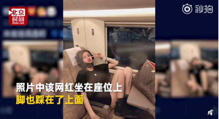 网红列车上踩座位拍照引热议 回应:谢谢你们免费帮我上热门