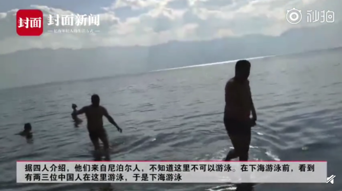 @封面新闻:5月17日,4名外籍游客在洱海界桩1859小普陀附近游泳。见有人拍摄,4人迅速上岸。据了解,4人来自尼泊尔,是大理一所大学的研究生。其中一人称,下海游泳前,看到有中国人在这里游泳,于是才下海的。几人被随后赶到的民警劝离。民警表示,没有明文规定洱海不能游泳,但为了安全起见,会进行制止劝离。